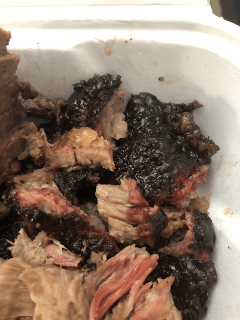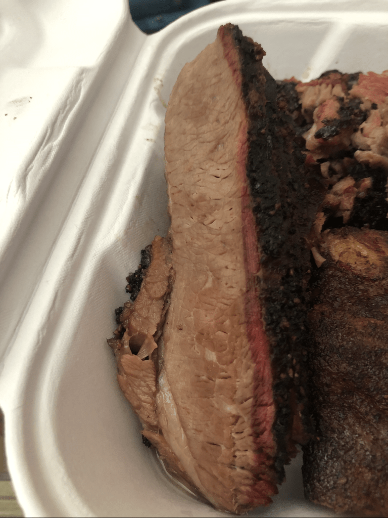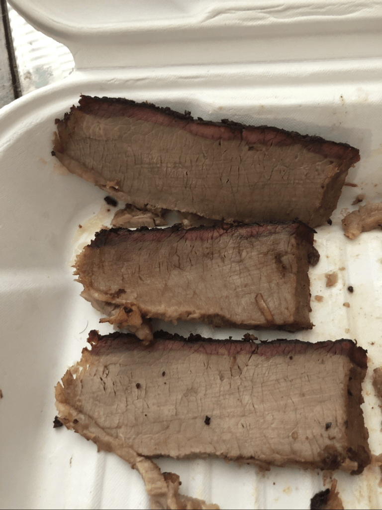 Description: Bought at 11:15 AM and it was already dry. Needs sauce to be good, with the tangy being better than original sauce. Had a solid smoke ring, but the flavor didn’t pull through