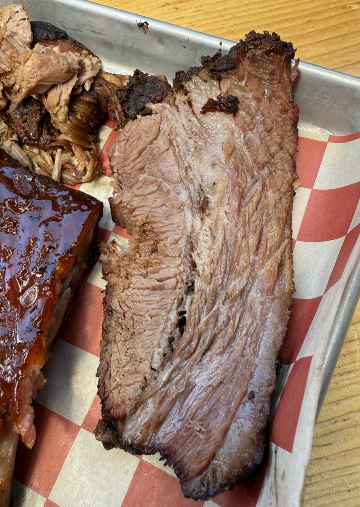 Description: Half rack as an add-on, the ribs were tender but not quite fall off the bone. Still had a little tooth to each bite. They sauce them on top of a pre-rub, which creates a nice peppery finish, probably one of the most pepper-heavy options in the state, and this was the best meat dish I had today. While I typically don’t like sauce, these were well done, and the sauce had a nice snap to it, vs being too sweet. Would get these again. Well-balanced flavors and an enjoyable rib overall
