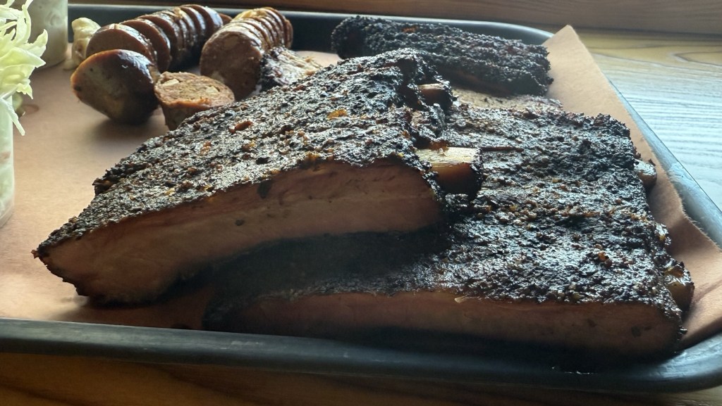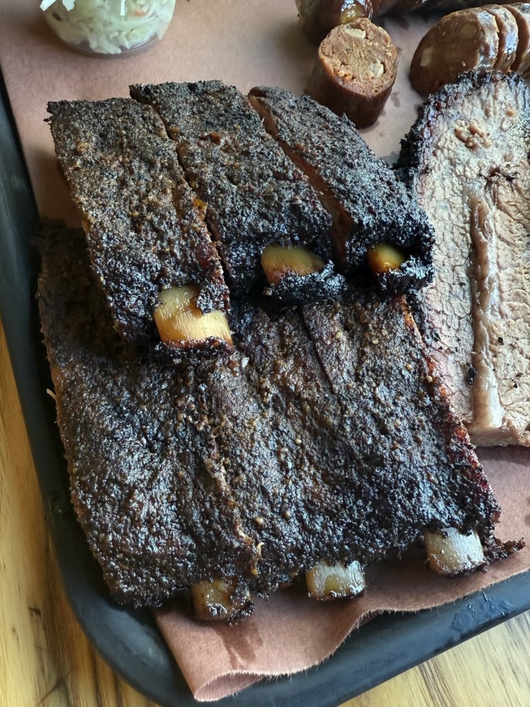 Description: These were fall-off-the-bone tender while still having a light bite to them. Well seasoned with salt, pepper, and some other spices that give it a nice sweetness. Looks like they probably do a light layer of barbecue sauce near the end of the smoke. When I asked the staff, they said they smoke with only a dry rub, then drizzle a little apple cider vinegar on the ribs to help make the bark, and then drizzle the paper when they wrap, and a light drizzle on top too. The result was that the ribs had a great overall flavor, with a nice meat-to-fat ratio, and were some of the better cut ribs I’ve had in Colorado in a while. Would absolutely order these again, with the only critique being that they could use a little more smokiness to them and maybe a little more pepper. That said, these are still some of the best ribs in Denver