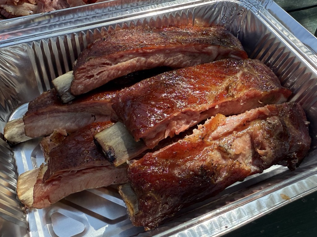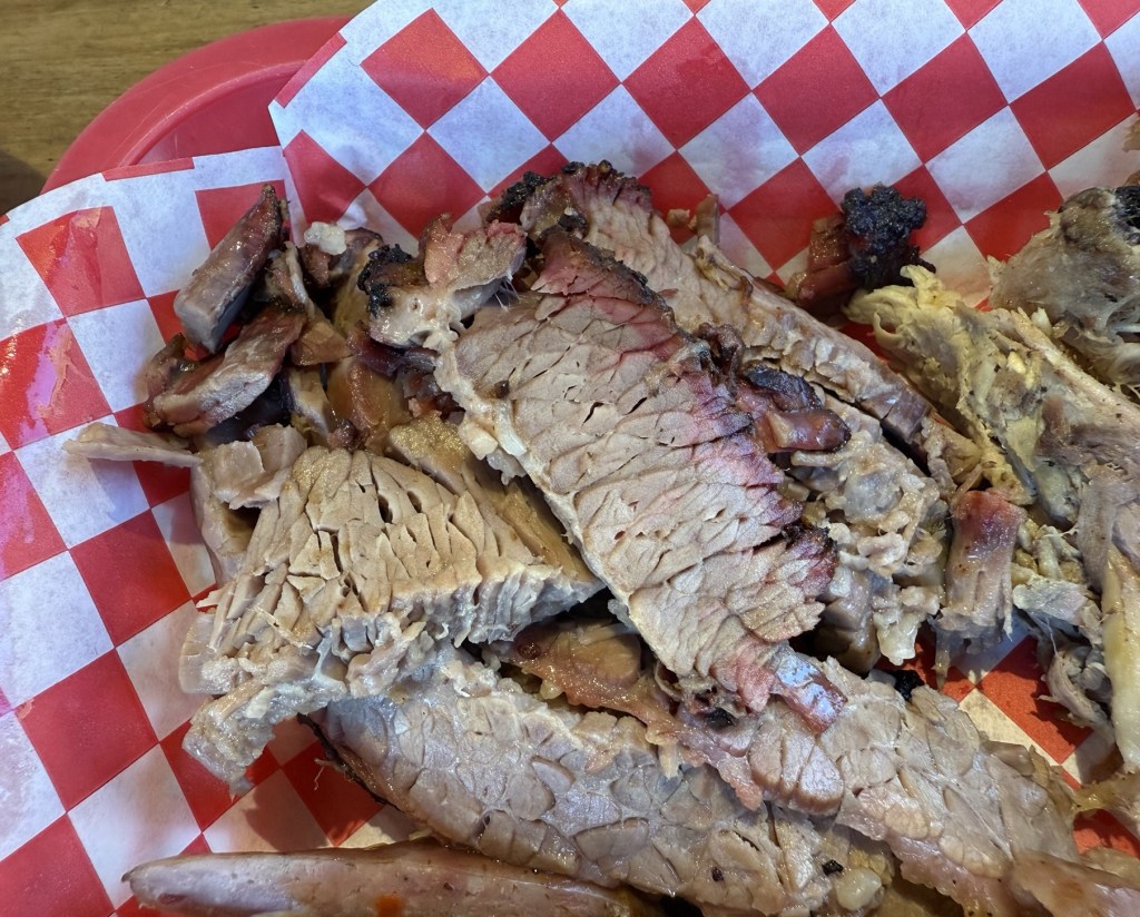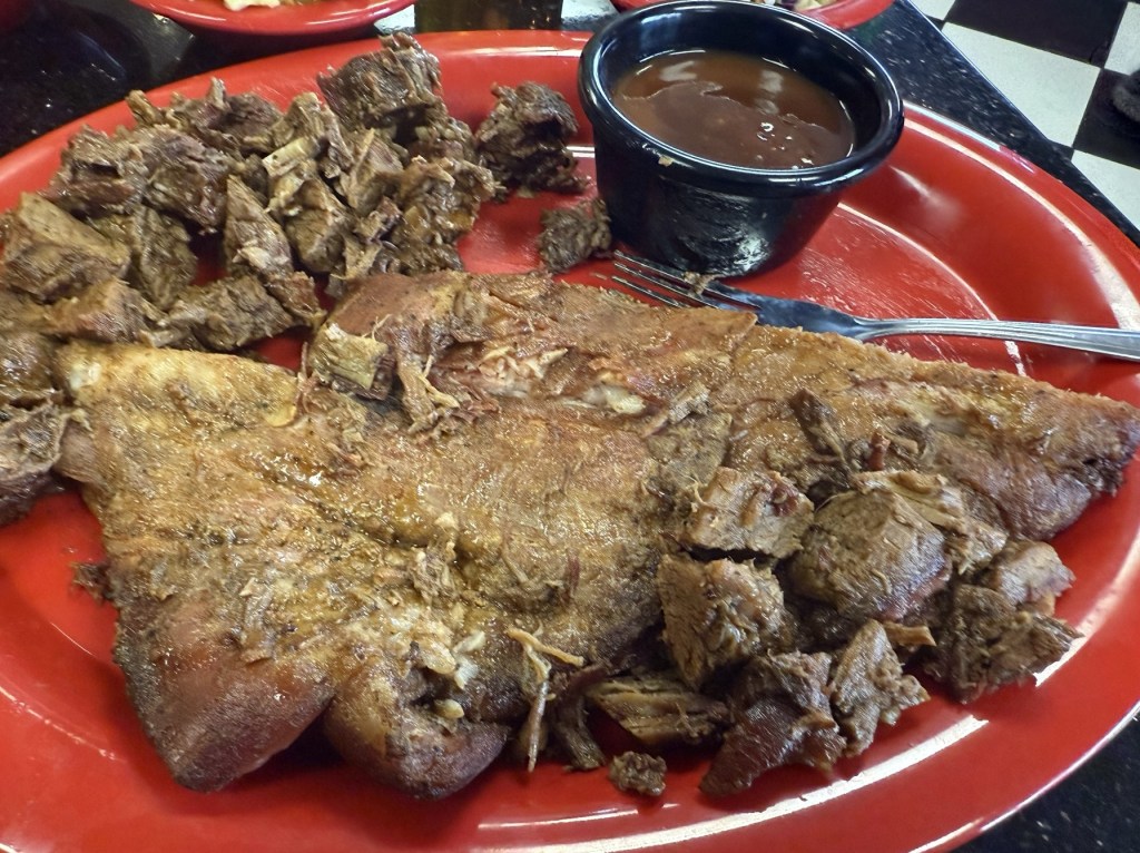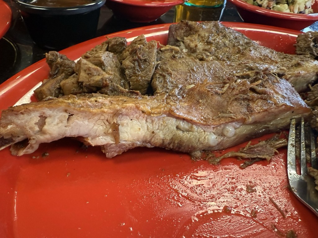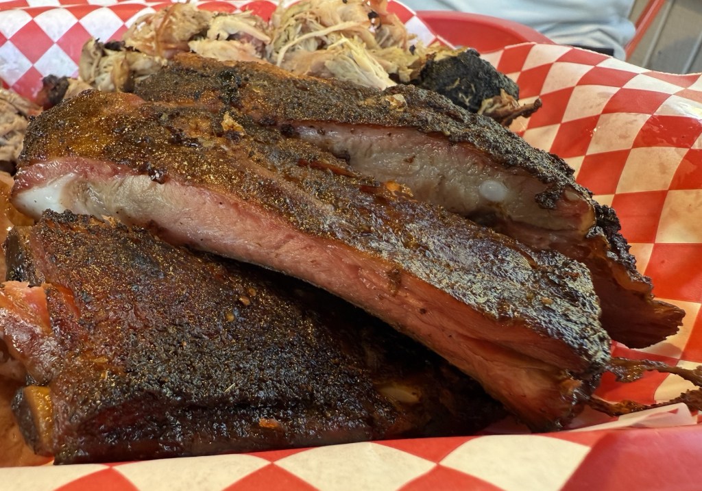 Description: Peppery ribs, which make their presence known right in the first bite, and something that other Colorado spots could take a page from (coming from a pepper fan). Well-cooked, being juicy and tender, but not perfectly fall-off-the-bone. They were also well trimmed with a good amount of meat on each rib. It looks like they do a light sauce right at the end of the cooking process that gives it a nice sweetness and glaze, but doesn’t overpower it with sweetness either. Every now and then, you bite into a sugar crystal for a pleasant and surprising sweet crunch, too. Really tasty rib that I would absolutely get again, and one of the more pepper-leaning options in the state