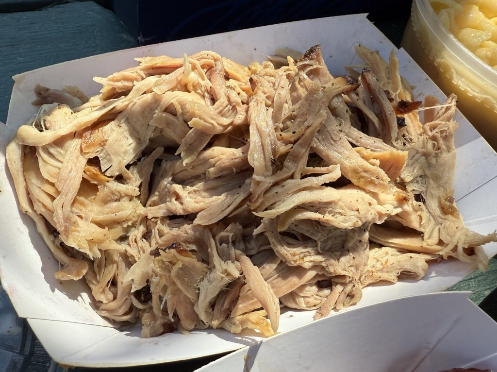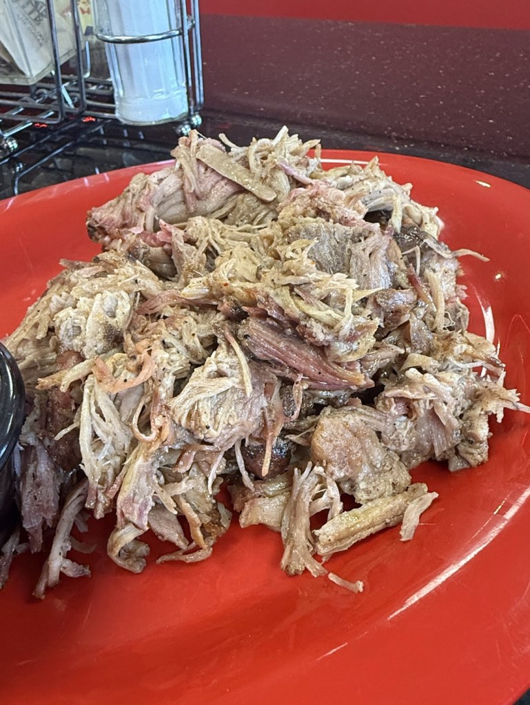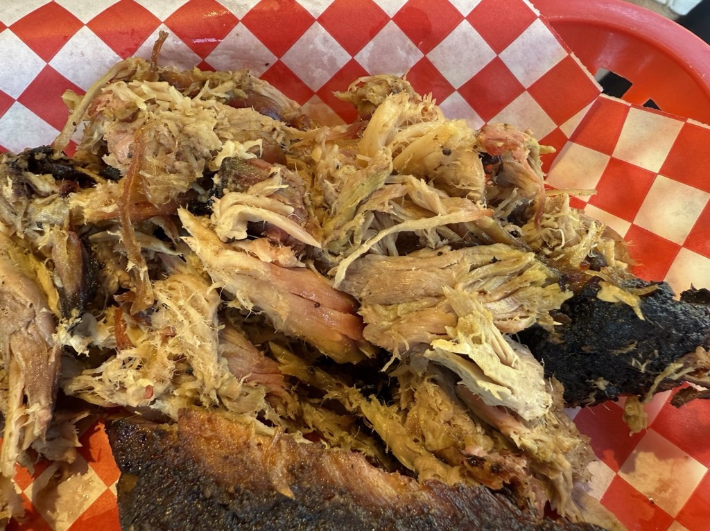 Description: Juicy with a light smokiness to it. Really well cooked, but could use some more seasoning and smoke to it too, as the overall flavor was a little light. Had a little bit of bark mixed in for some texture, and was improved with just a little bit of the original BBQ sauce. Quality pulled pork, but not as outstanding as the brisket or as good as the ribs. Would get again, but not a must