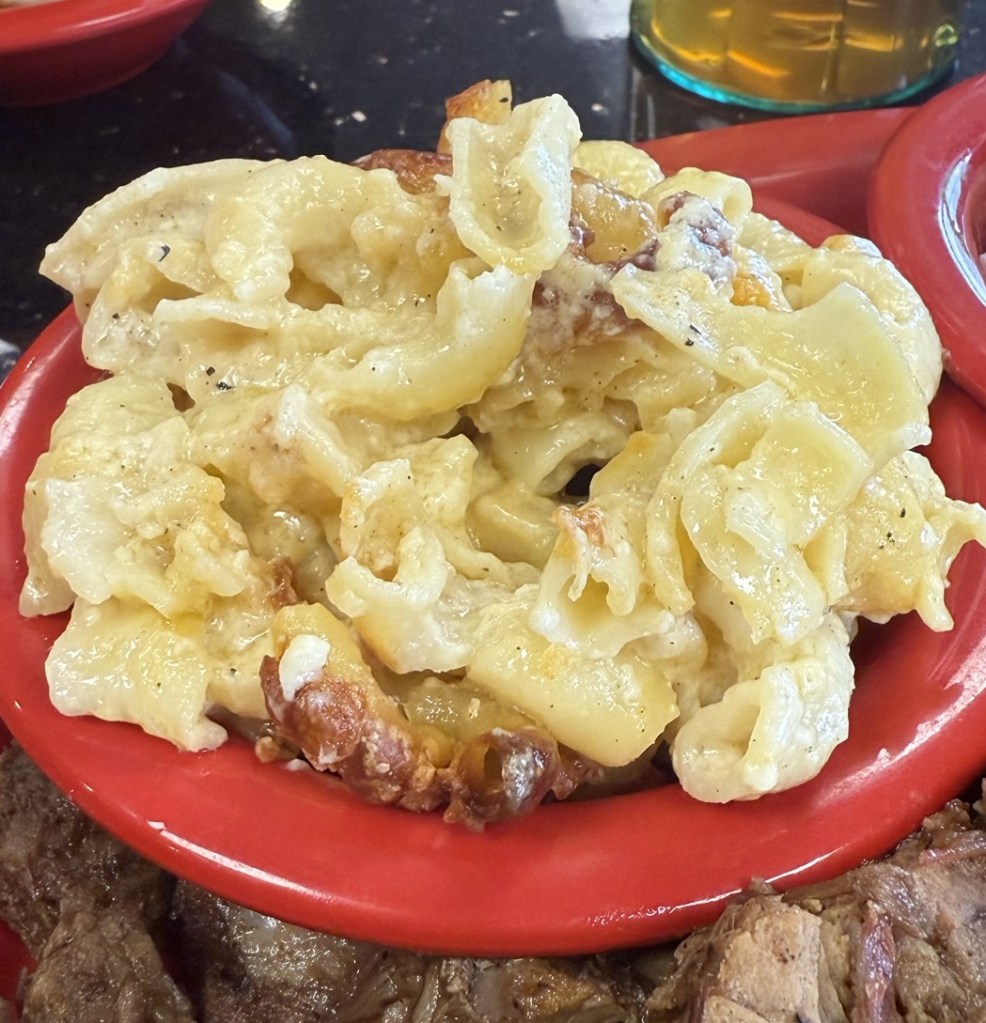 Description: Shell pasta with heavy cheese sauce visible over the top. Seems closer to a queso cheese blend, with a little bit of heat and spice to it. Noodles were well-cooked, but the sauce seemed a little too close to queso than a true Mac and Cheese. That said, a unique option for the state and is worth ordering for the table, and was a tasty side overall