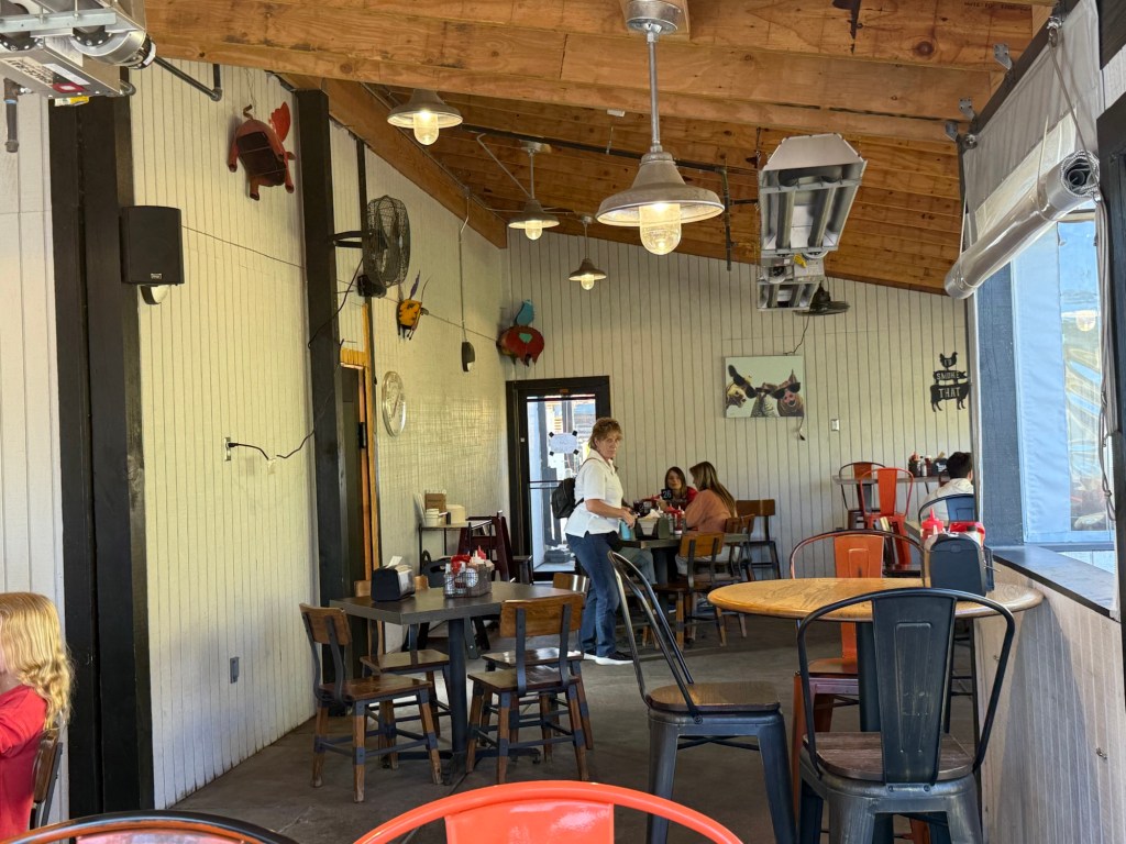 Interior Description: Tiled floors, with wooden tables and chairs, with a full L Bar providing plenty of stool seating. Stage for live music and a nice outdoor patio with metal tables and chairs for good weather seating options. Had some light blues music playing for a laid-back atmosphere, which leans more local dive bar than a pure BBQ joint, but is an enjoyable experience overall