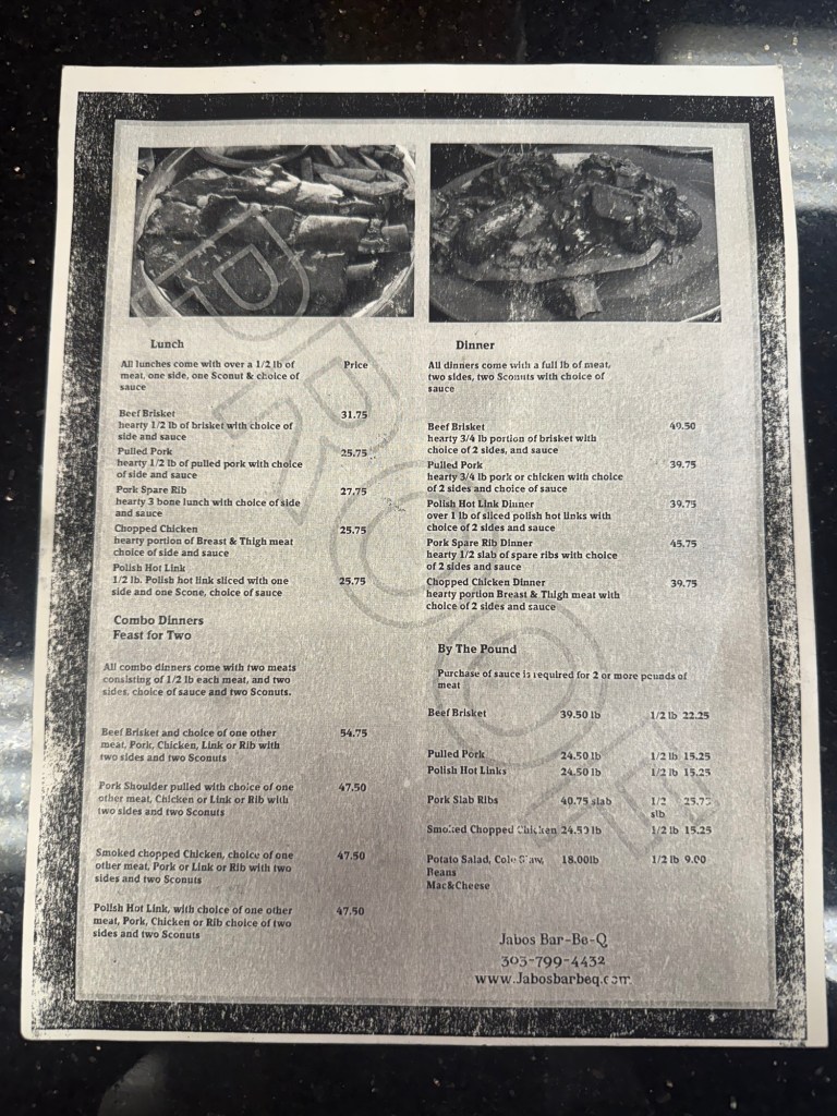 Overall Rating and is it worth a visit: 8.75/10 and Yes. A small spot in the tiny town of Berthoud, just south of Fort Collins. Walking up, there was not a ton of smoke in the air, but it was also 30-40 mile per hour wind gusts, so this wasn’t surprising. Upon entering, the first thing I noticed was that they had a very friendly staff, and it seemed to be a local gathering spot for playing Golden Tee and starting the weekend early, based on the patrons I saw. As a heads up, it’s more of a bar/restaurant feel than a traditional/designed BBQ joint for the interior, but don’t let that stop you from heading in and placing an order. That said, I was very happy that I saw some massive offset smokers out back, so I was still encouraged that I was about to get some good smoked meats that matched the high reviews and recommendations they’ve received. Similar to when I was walking up to the restaurant, there was not much of a smoke smell upon entering, but it certainly had a laid-back, welcoming vibe to it, with just a hint of BBQ smoke in the air. Also, in addition to the BBQ, they have a full burger, sandwich, apps, and salad menu, with full bar options available as well to help wash down your meal. They even have a small stage set up as well for some live local music if that’s your jam. In terms of the food, I was pleasantly surprised at how good everything was, with each dish I ordered being extremely enjoyable and reasonably priced, but especially the brisket, which is easily the best I’ve had north of Denver. Overall, it creates a strong local hangout community feel, and while it does lean older in years for the patrons, it also creates a warm, friendly environment that is typically synonymous with happy BBQ vibes and pits. Probably a top 10 brisket and ribs in the state, and absolutely some of the best BBQ north of Denver. Would recommend and will be back for sure