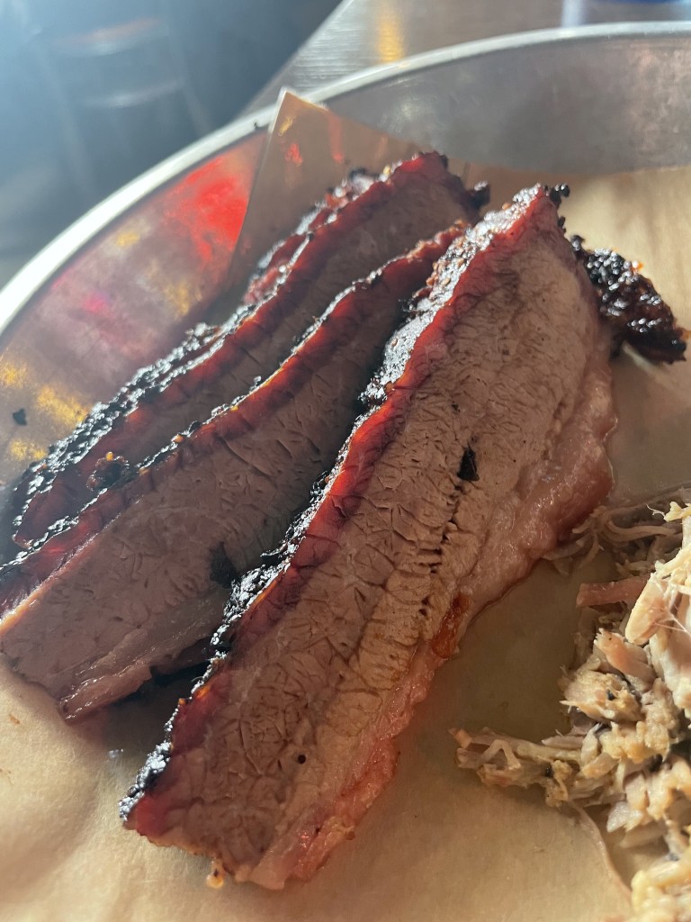 Description: Use a blend of seasonings for their brisket. Once of the juicer briskets in Denver, with good hickory smoke flavor running through it. That said, seasoning was too light and needed more, with about a 1/4 inch smoke ring to it. Doesn’t need any sauce, but the house tangy is a nice addition and one of the few bbq sauces I’ve really really enjoyed. Said they smoke the brisket for 13-14 hours and use the same seasoning blend for the brisket as the ribs. Seasoning has an unique eastern asian flavor to it that doesn’t taste like your standard American barbecue, but is good overall. Was also some of the thickest cut brisket I’ve had. 50/50 on if I’d order again