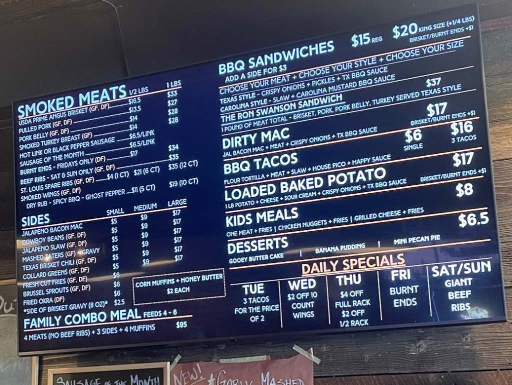 Regional Style of BBQ: Multiple styles, although the owner is from Virginia, so leans Carolina style