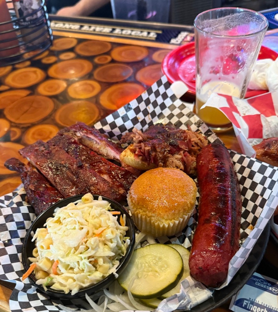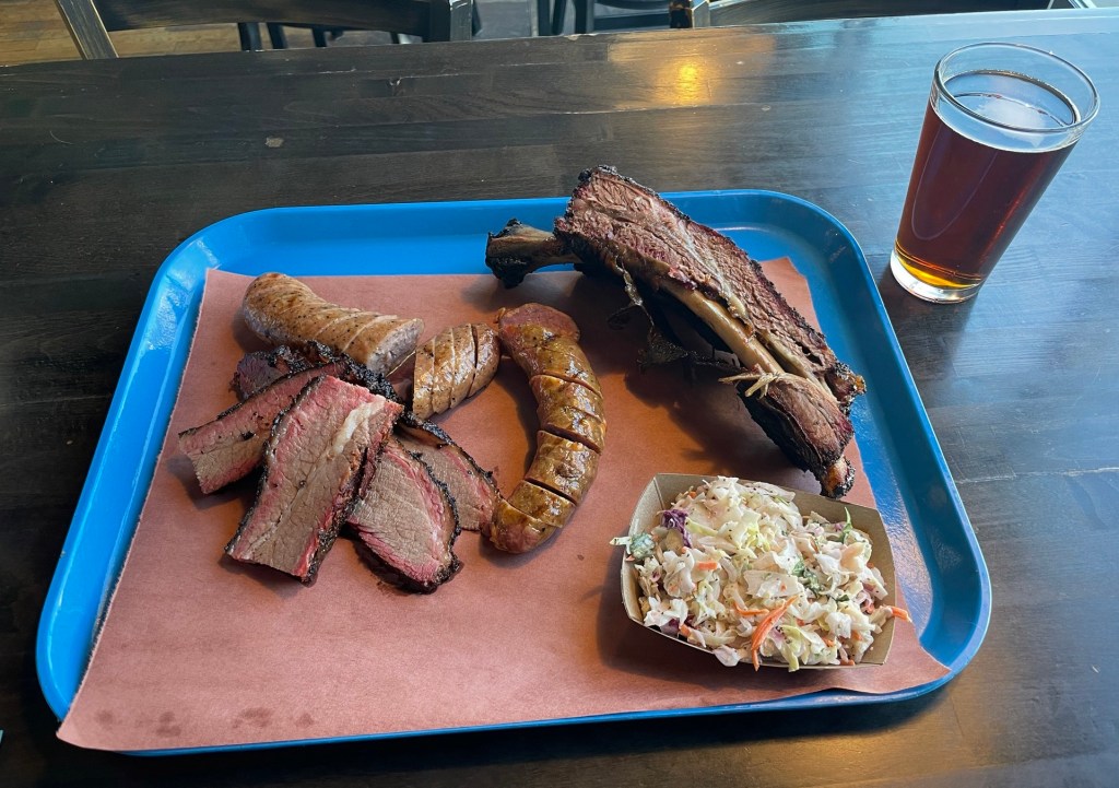 Total Cost: $68.06 with tip – Ordered the platter and a half rack of ribs on the side, plus a beer. Came with brisket and pulled pork for the mains, and then coleslaw for the side