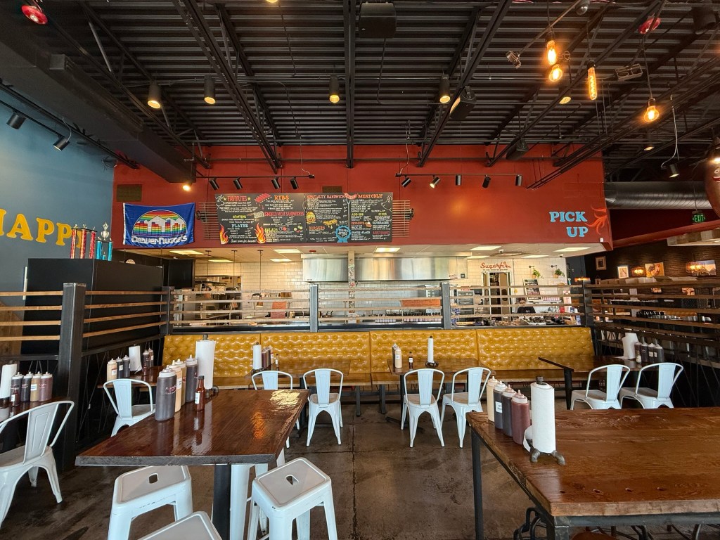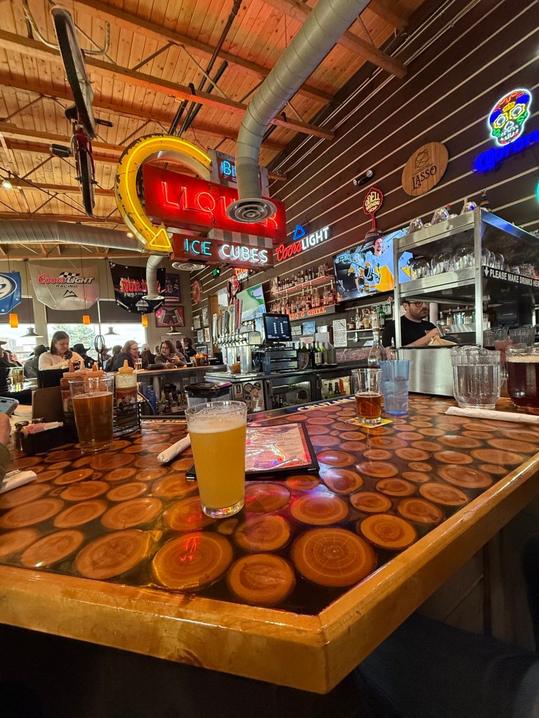 Interior Description: Rustic mountain is probably the best way to describe Busey’s interior. With corrugated walls, concrete floors, and custom wooden countertop seating surrounding a unique fire pit seating option, it creates an industrial, but inviting environment. Indoor seating options with a full bar for probably 30-40 people, with additional exterior seating that I believe is dog-friendly. It’s the perfect place to stop, be it after a long day of skiing and needing a rest before starting the drive back, or just stopping in for a quick pint or bite of BBQ after a well-earned day in the mountains