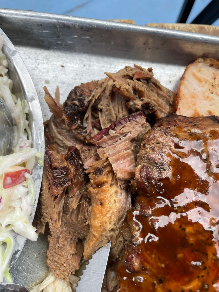 Description: Really well balanced with a nice smokiness that’s probably one of the top 5 in the state. Could use a little more pepper or seasoning, but beyond that, it’s a damn good pulled pork with so sauce needed, but both the original and hot are tasty additions if you’re a sauce fan. Ordering again next time I’m there