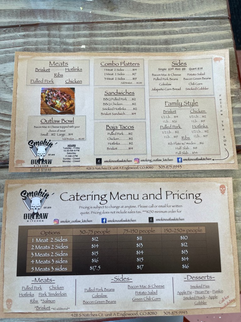 Overall Rating and is it worth a visit: 8.75/10 and Yes. Located along Main Street in downtown Canon City, Colorado, Boudreauxs has a nice, inviting look and feel from the street, with a cool mural on the side of the building, and with the light smell of smoke enticing you to step inside as you stroll along. Once you open the doors, you are greeted by a friendly staff and traditional BBQ joint settings, with seating at the bar, on the main floor, or on the outside patio, which is dog-friendly and shaded. This all comes together to create a laid-back vibe and environment, perfect for enjoying some barbecue. I ended up meeting with the owner Drew, who was extremely welcoming and happy to chat all things bbq with me. Learned he likes to use Pecan wood for his smoking activities and typically gets their wood from Los Cruces or Galveston, Texas, when he makes his regular trips to visit his dad. He will use local wood, too, as needed, but definitely prefers his Texas logs. In terms of the food, Boudreauxs might be the best BBQ south of Denver for those venturing near the Colorado Springs area. With solid brisket, pulled pork, ribs, and some of the best coleslaw in the state, it’s 100% worth a visit if you’re in the area and craving some BBQ. Not sure if it’s completed as of this posting, but he’s also planning on opening up a Cajun specialty food store section in the restaurant, which I will absolutely be coming back to visit and buy from