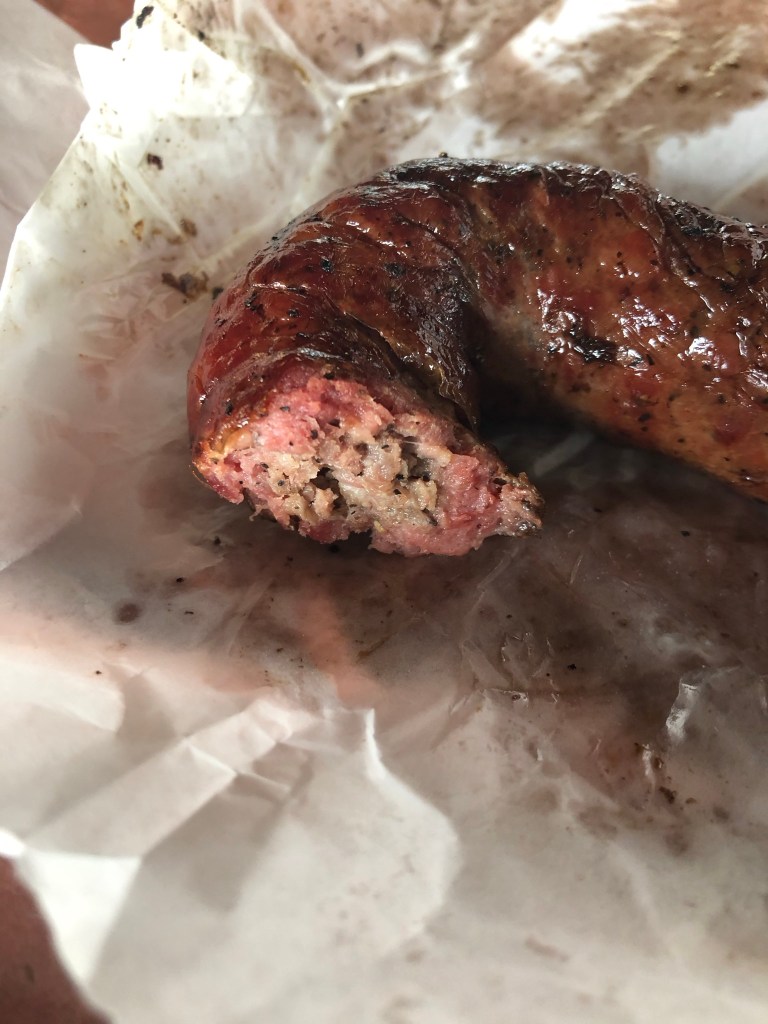Description: These had a nice snap to the casing, even after being split in half and served on a bun. They had a little bit of spiciness and heat to them, with a nice texture and balanced meat-to-fat blend. Would get again but can do without the bun